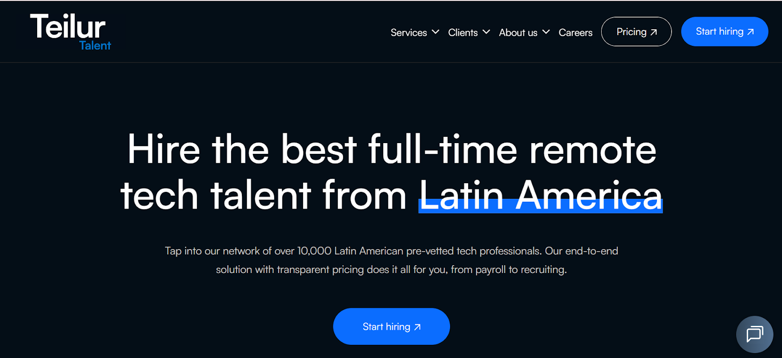 With access to a network of more than 10,000 pre-vetted Latin American tech professionals, Teilur Talent enables fast hiring of senior-level talent without compromising quality or compliance. Its end-to-end model covers recruiting, payroll, and local employment administration, removing operational complexity while keeping engineers fully embedded in client teams.