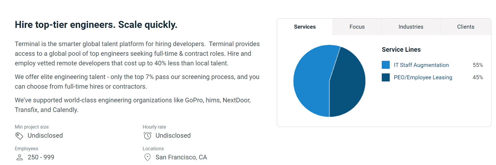 Terminal.io helps companies hire and manage remote engineers globally by handling contracts, payroll, benefits, and HR across more than 180 countries.